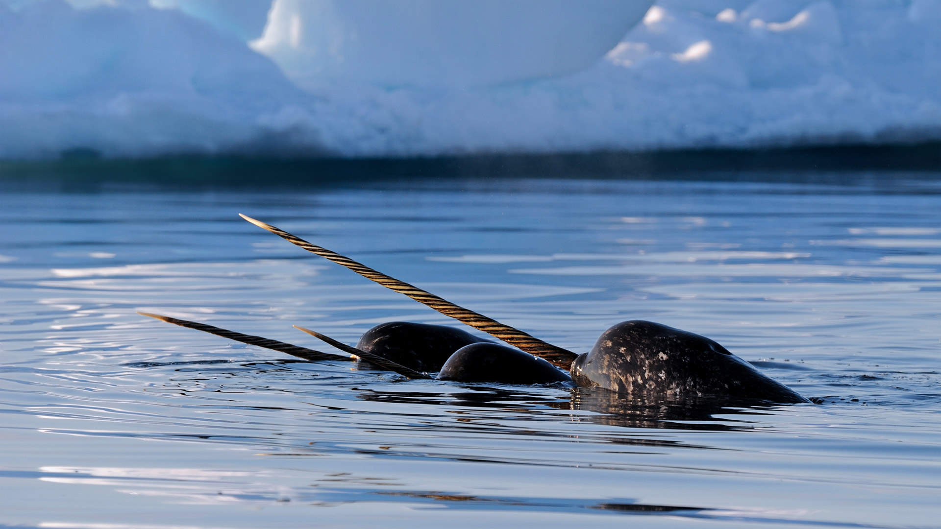 Today is Unicorn Day—or what celebrants call "the sparkliest holiday of the year." To honor the mythical horned beast, we bring you the next best thing: a pod of narwhals brandishing their tusks in the Arctic Ocean. Narwhals develop only two teeth, but—in males especially—the left canine can grow into a 9-foot-long spiraled tusk. The tusk juts right through the narwhal"s upper lip, lending the whale the nickname "unicorn of the sea."