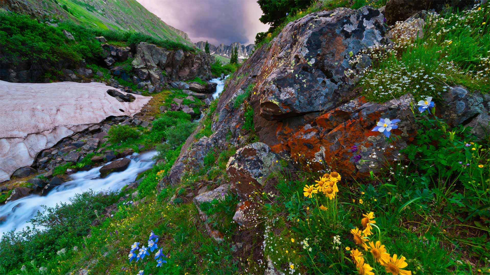 Songstress Dolly Parton once sang "wildflowers don"t care where they grow," but we gotta believe the wildflowers growing in Colorado"s American Basin, shown here, are pretty delighted with their surroundings. American Basin is in the San Juan Mountains in the southern part of the state, about a five-hour drive from Denver. Visitors here will find rocky cliffs, streams, unique rock formations, and some spectacular wildflowers. July and August are the best months to see the blooms—it"s the time of year when you"ll reliably spot the Rocky Mountain columbine (Colorado"s state flower), elephant"s head, Parry"s primrose, and marsh marigold. Bring us back a bouquet, all right?