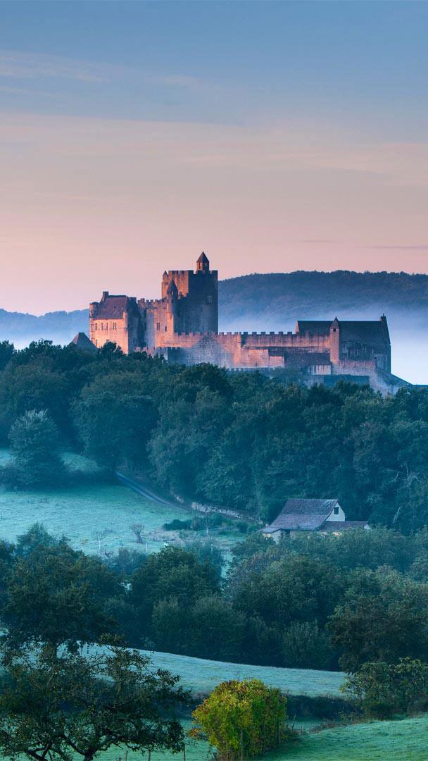 Perched high above the Dordogne River in France, the Château de Beynac is one of the best-preserved castles of the Périgord Noir region. This 12th-century fortress has been meticulously restored, showcasing for tourists such delights as a dungeon, 13th-century toilets, and magnificent views of the "Valley of the Five Castles" below.
