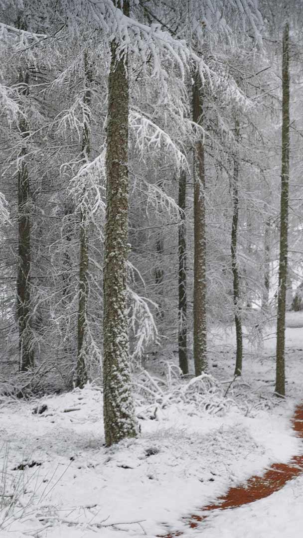 This wintry, wooded scene comes from Northern Vosges Regional Nature Park in northeastern France, one of the country"s most beautiful and pristine examples of natural beauty. The park, established in 1976, is over 322,000 acres in size, 65% of which is covered in forest. The larch trees seen here are native to many of the mountains of central Europe, such as the Alps, Carpathians, and the Pyrenees.