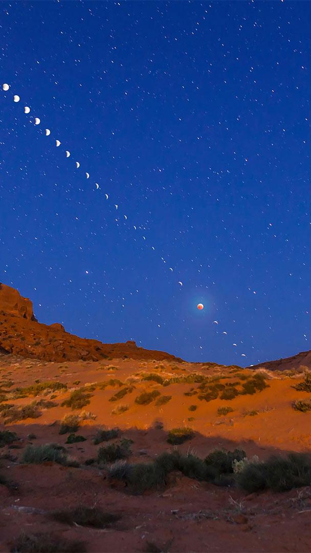 We"ve heard the phrase "many moons," but never took it this literally. We"re looking at 28 merged photos of our one and only moon over Utah"s Monument Valley: 26 snapshots of its partial phases, plus two layered exposures of the eclipsing moon at center.