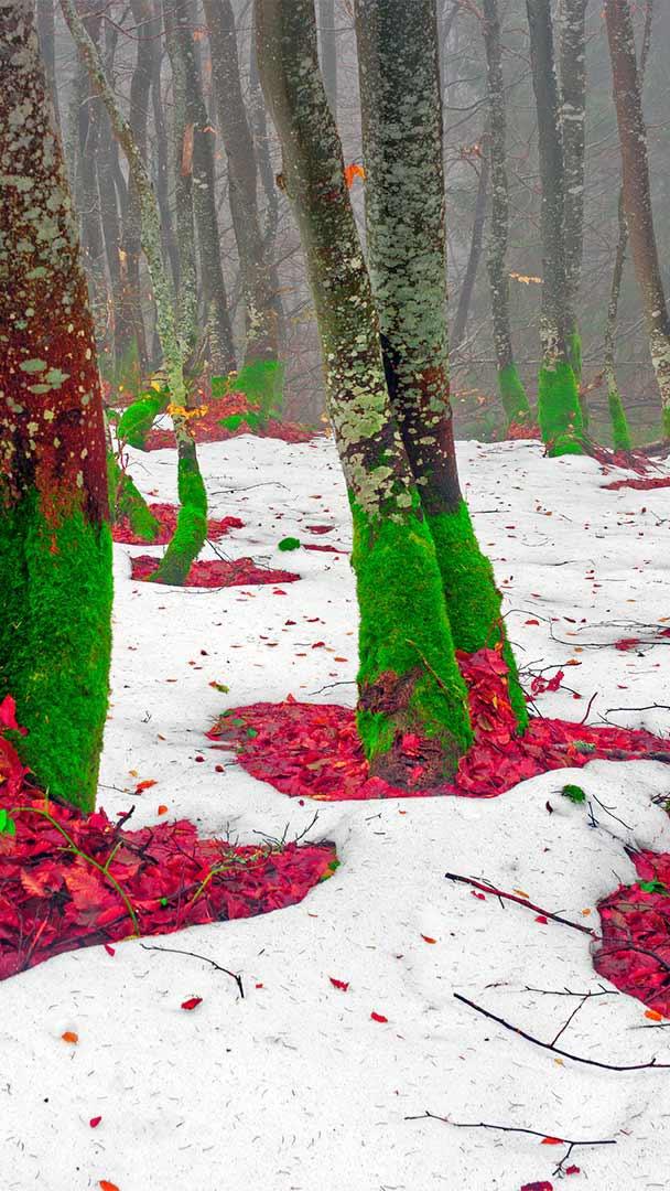 For Christmas Day, we"re taking in the winter views on Mount Khomyak in Ukraine"s Carpathian Mountains. The bright green moss and the red of the fallen leaves pop against the snowy white, as though the forest were transforming into a magical band of Christmas elves. While much of the Christian world celebrates Christmas on December 25, for those who follow Eastern Orthodox Christian traditions—including many Ukrainians—Christmas is still a couple weeks away. Eastern Orthodox Christmas celebrations are tied to the Julian calendar, which is 13 days behind the more universal Gregorian calendar, so Christmas Day in Ukraine will be celebrated on January 7.
