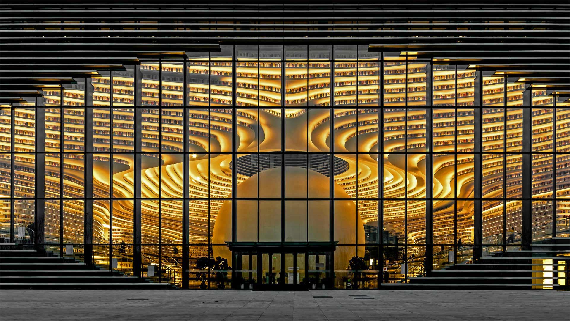 World Book Day takes us to the Tianjin Binhai New Area Library in Tianjin, China. Nicknamed "The Eye," this immense, stunning facility was completed in 2017 as the focal point of the Binhai Cultural Center. Designed by Dutch design firm MVRDV in collaboration with local architects, the library"s floor-to-ceiling bookshelves appear well stocked with books, but most of them are actually printed images. The real books are stored in traditional rooms with normal shelves. Still, it looks super cool.