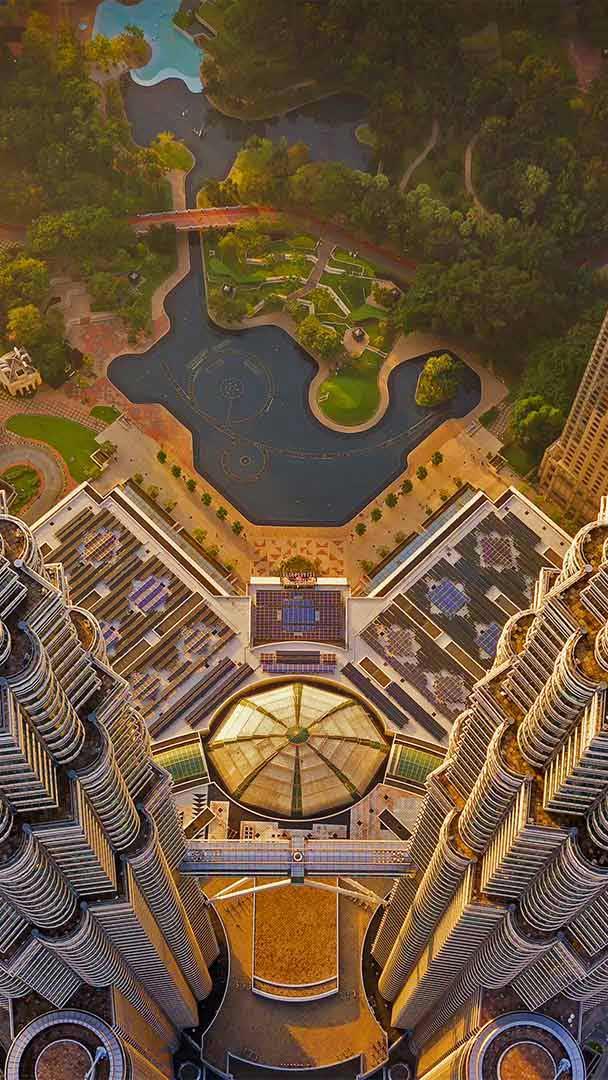 The Petronas Twin Towers are the unmistakable calling card of the Malaysian capital city of Kuala Lumpur, affectionately called KL. The 88-story, 1,483-foot cylindrical towers were the tallest buildings in the world when they were completed in 1996, until 2004 when Taiwan"s Taipei 101 topped them by almost 200 feet. Still the tallest twin skyscrapers in the world, they"re our perfect inspiration today on Skyscraper Day, set aside to appreciate such engineering and architectural feats.