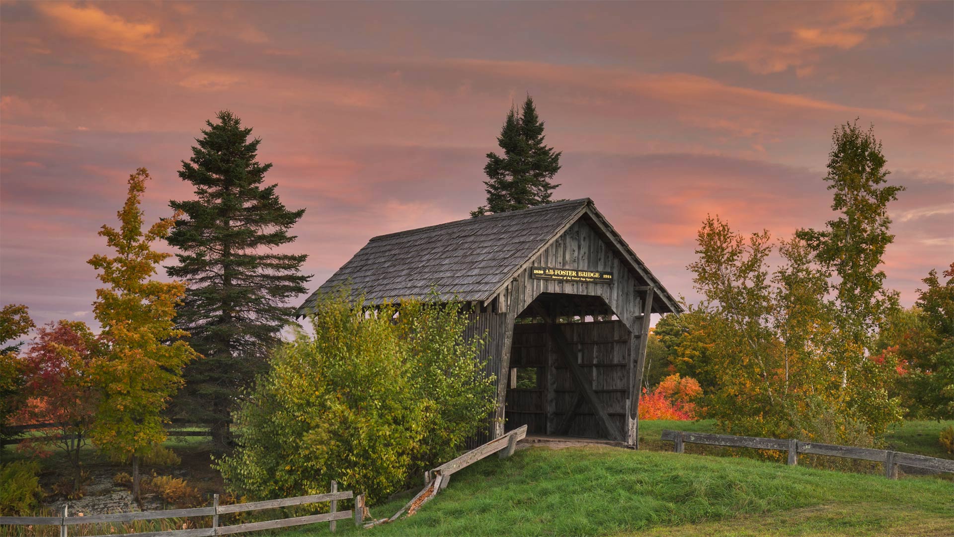 At one point in history, the United States had upwards of 14,000 wooden covered bridges. Most of them were built between 1825 and 1875 to cross a stream or river and were intended to withstand the elements. An uncovered wooden bridge may have a life span of only about 20 years while a covered bridge could stand for more than 100. Even still, they don"t fare well without upkeep and restoration costs can be high. That"s why iron replaced wood as the preferred bridge-building material in the mid-1800s. These days, fewer than 900 of the original wooden covered bridges are believed to still be standing. The A. M. Foster Bridge, seen in today"s photo, can be found in Cabot, Vermont.