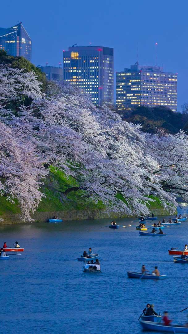 Each spring, folks across Japan observe "hanami," a treasured tradition of viewing nature"s breathtaking display of cherry blossoms. Japanese cherry trees, known as "sakura," reach full bloom in March in the south of the country. Our homepage picture shows cherry blossoms cascading over the moats which surround the Imperial Palace in Tokyo.