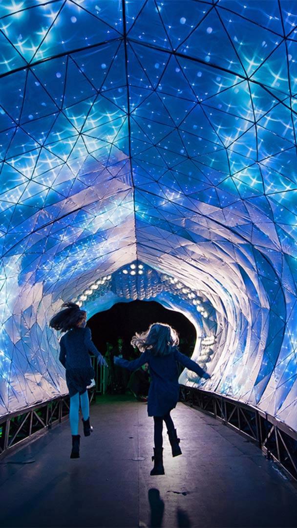 It’s winter in Australia, and the residents of Sydney fend off the winter gloom with a citywide festival. The wild light shows of Vivid Sydney encourage people to explore the city and see it in a new light. (Sorry. That had to happen.) Our photo shows the interior of "PJ the Port Jackson Shark," a light sculpture at the Taronga Zoo. It allows visitors to walk into the mouth of the ‘shark.’