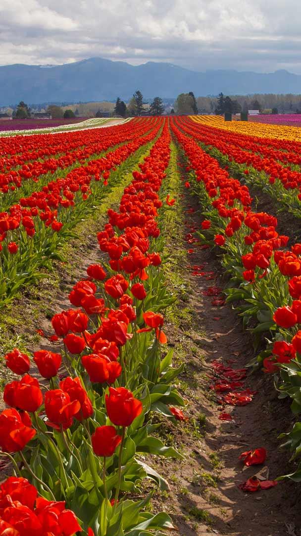 Walk through a real-life canvas where vibrant blossoms paint the Earth in the shadow of Mount Vernon. That"s exactly what awaits you at the Skagit Valley Tulip Festival in Washington. Founded in 1984 by the Mount Vernon Chamber of Commerce, it began as a three-day event but has since grown into a month-long fiesta. The festival runs from April to May and draws visitors from all over the world. The floral show spans multiple gardens in the valley, so make sure you explore Tulip Town, Tulip Valley Farms, Garden Rosalyn, and the 50-acre display at RoozenGaarde. You can tour the tulip gardens by bicycle and explore the local wineries, breweries, and restaurants. Among the petals, life slows down just enough for us to remember the simple joys—breathe deeply, smile widely, and revel in the spectacle that is the Skagit Valley Tulip Festival.