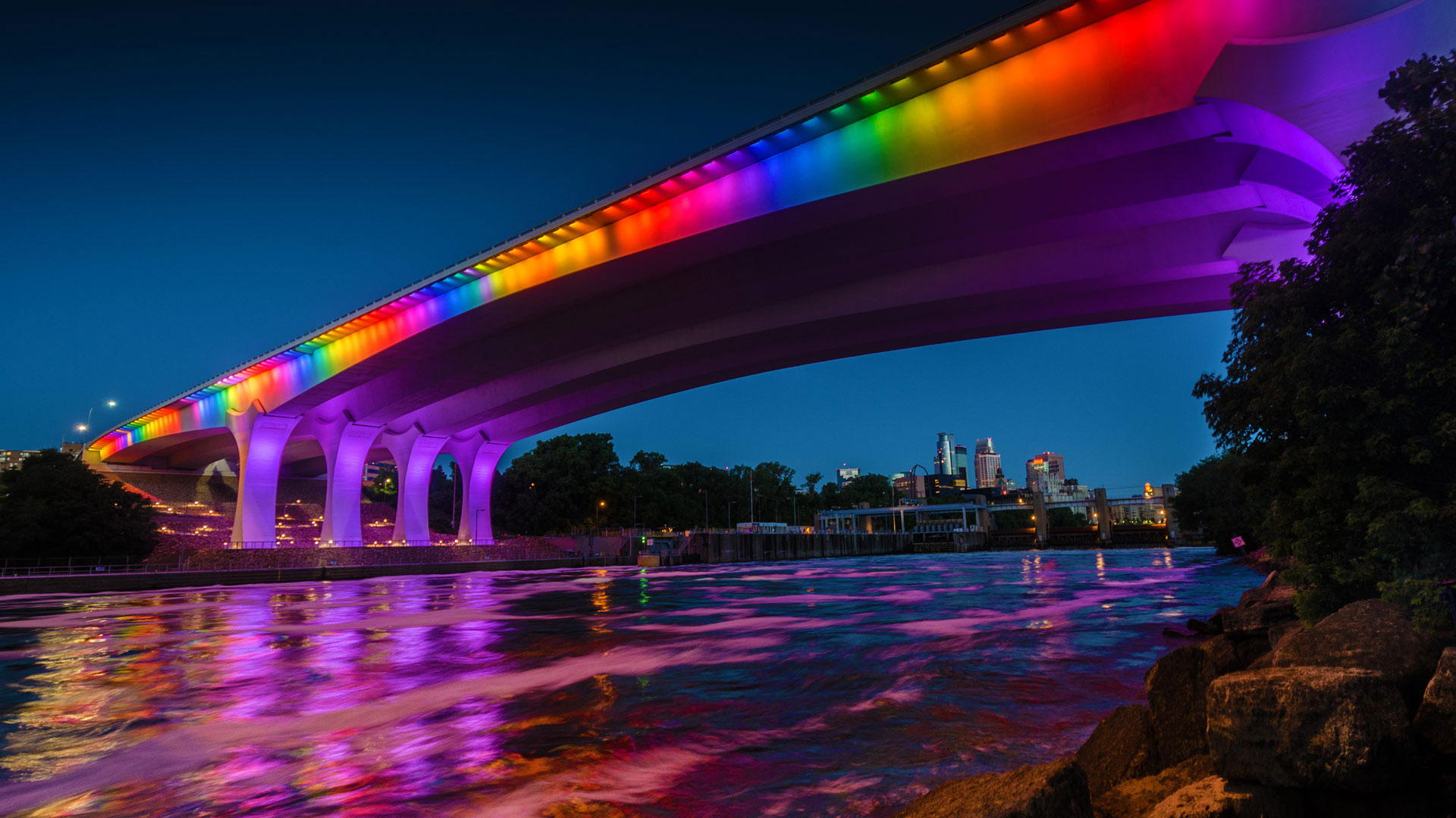 June is Pride month, and cities across the nation are celebrating the LGBTQ community. Here in Minneapolis, the Interstate 35W Bridge is lit up with rainbow colors—a longtime symbol of gay pride. The rainbow flag first debuted 40 years ago, in 1978, after San Francisco city supervisor Harvey Milk suggested that designer Gilbert Baker create a flag for the San Francisco Gay Freedom Day Parade. Baker, who died last year, once said he was inspired by rainbows because they’re part of nature, and representative of everyone.