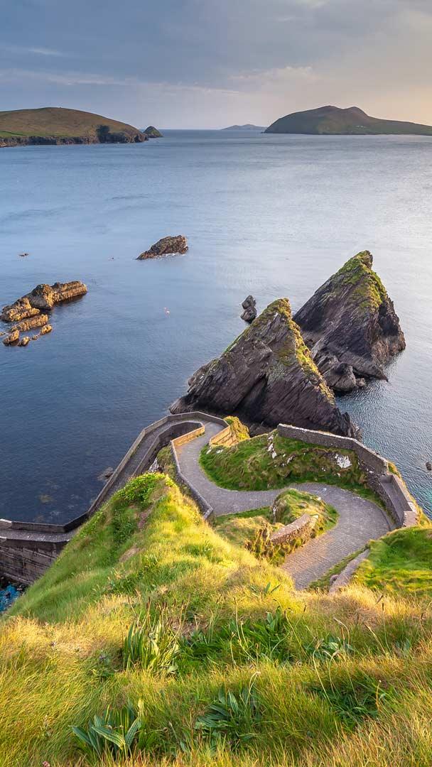 This stunning view—where the sky meets the open waters of the Atlantic—is accessible only by foot. Tucked away on Ireland"s wild and beautiful Dingle Peninsula, Dunquin Pier is one of the most photogenic spots in County Kerry. The small pier is famous for its winding, serpentine path that zigzags dramatically down the cliffside like a ribbon. These steep curves aren"t just for the thrill—they"re the only way to reach the pier below, where boats depart for the remote Blasket Islands.
