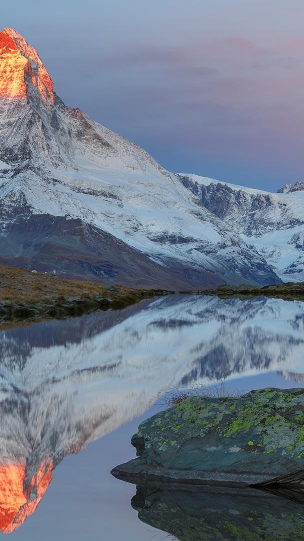 The Matterhorn reflected in Lake Stellisee at sunrise, Zermatt, Switzerland © Andy Trowbridge/naturepl.com