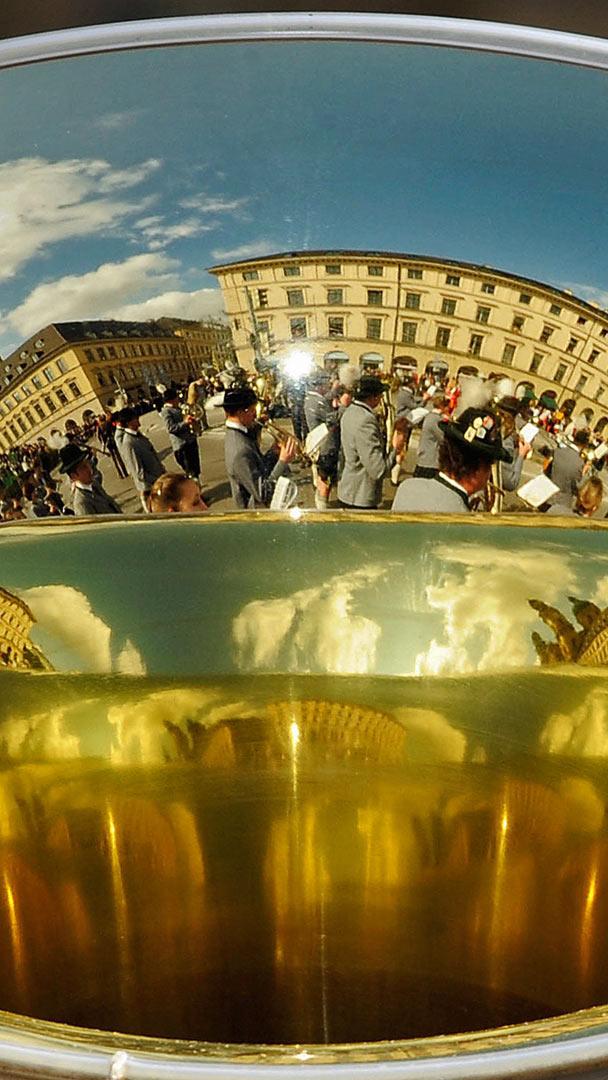 Our photo today shows the crowds at an Oktoberfest parade reflected in the bell of a brass horn. In Munich, Germany, the 16-day festival will include many brass bands marching and playing celebratory Bavarian folk music, while other bands will play for the beer drinkers in the tents and beer halls that dot the festival grounds. Why call it ‘Oktoberfest’ when it begins in September? The original Oktoberfest began on October 12, 1810, as a massive one-day royal wedding celebration open to the public. On October 12 the following year, Munich citizens commemorated the wedding with another party, and an annual tradition was born. The festivities grew longer and longer each year over the course of two centuries, and Oktoberfest eventually extended into the weeks before the original date. Organizers supported the earlier start to take advantage of better weather in late September, but the party will forever be known as Oktoberfest.