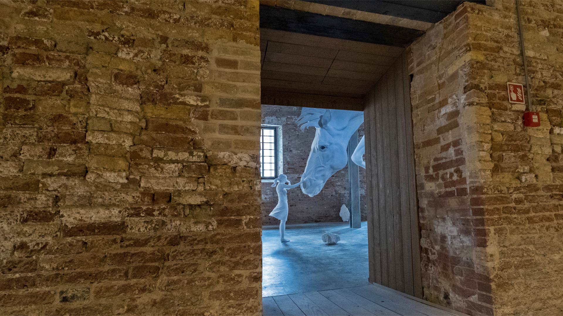 Our photo today shows a small part of artist Claudia Fontes’ sculpture called "El Problema del Caballo" (The Horse Problem). The Argentinian artist exhibited the large installation work with smashed pieces of stone surrounding the larger-than-life white horse, as if it had crashed into the exhibition space. The installation was shown in 2017 at the Venice Biennale, where artists from around the globe bring their work to show off at this every-other-year arts and culture festival in the Italian city of Venice. The Biennale is just starting up again this month, and many of the programs and exhibits will be going on through the summer and into fall.